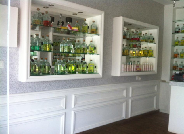 Διακοσμητικά στοιχεία: Ράφια, καμπύλες, εσοχές, φωτιστικά σώματα, πλάτες τηλεόρασης.