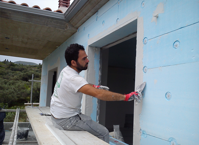 Με την εφαρμογή συστήματος θερμοπρόσοψης, τα εξωτερικά τοιχώματα "ντύνονται" με ειδικά θερμομονωτικά υλικά, προσφέροντας ενεργειακή οικονομία, άνεση και προστασία του κτιρίου από φθορές.
